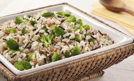PreparoNuma frigideira grande, aqueça o óleo e frite o alho. Junte o brócolis e refogue rapidamente. Junte o arroz 7 grãos e misture bem. Tempere com sal e pimenta a gosto. Transfira para uma travessa e sirva em seguida.